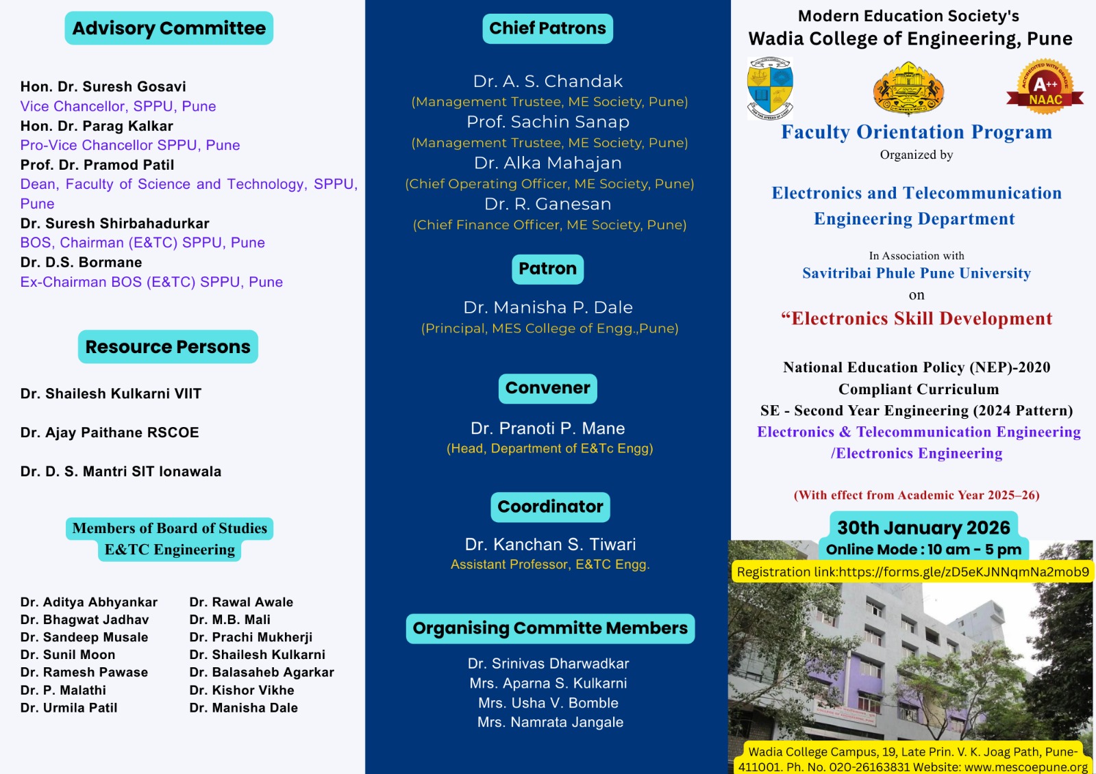 Welcome to the Department of Electronics and Telecommunication Engineering at M.E.S. Wadia College of Engineering.