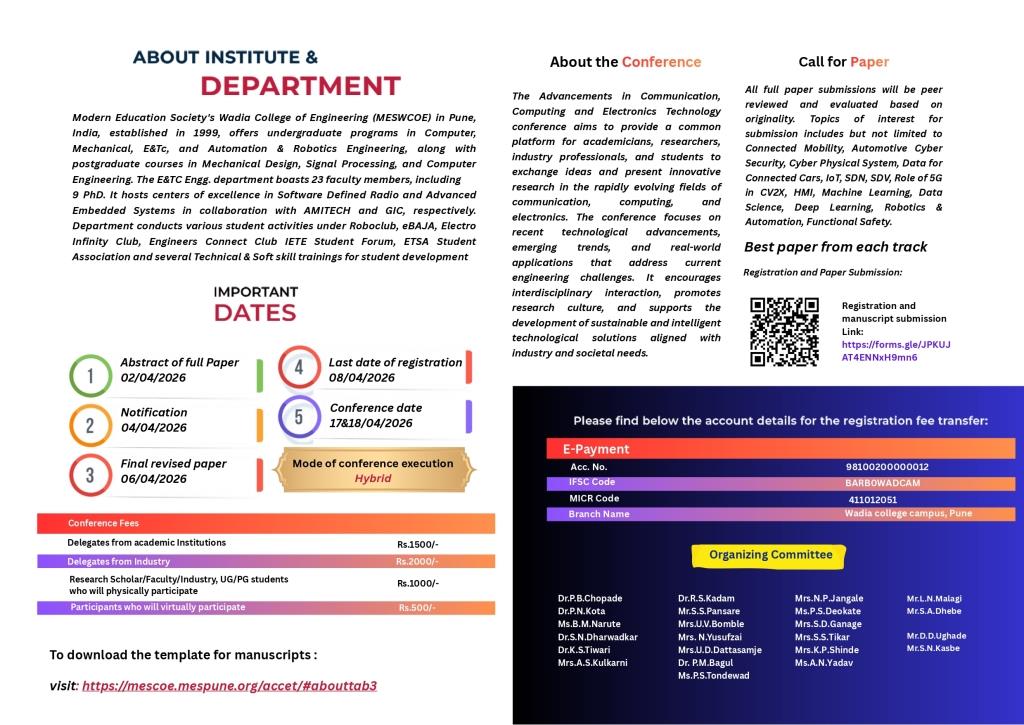 | Prof. Y. M. Ajgar | yogita.ajgar@mescoepune.org Ph. +919960711983 |